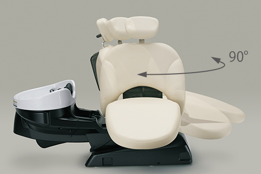 最大90度まで※回転できます。マッサージ施術など多彩なメニュー展開がはかれます。また、任意の位置でも固定できます。