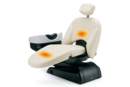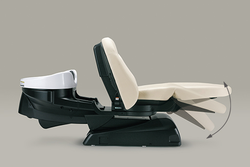回転するシート、着脱式ヘッドレスト、可動するレッグレストにより、自在にフルフラットポジションへ。フェイシャルケアやデコルテマッサージも簡単に施術でき、サロンメニューの充実に貢献します。