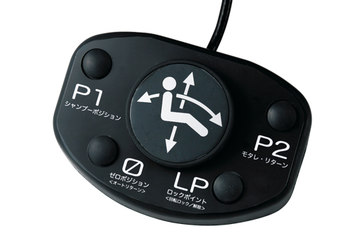 昇降・寝起き・回転のマニュアル操作はもちろん、便利なプリセット機能(P1)、オートリターン機能を装備。また、ワンタッチで背モタレが起こせる機能(P2)により、フェイシャルポジションからシャンプーポジションへの移行も簡単です。