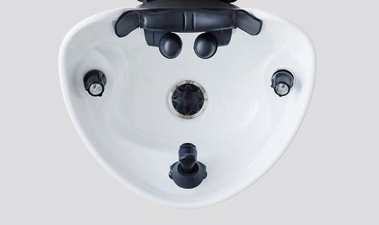 YUMEボウルがスイング。フラットシャンプーを定点サービスで叶えることができ、多機能チェアと組...