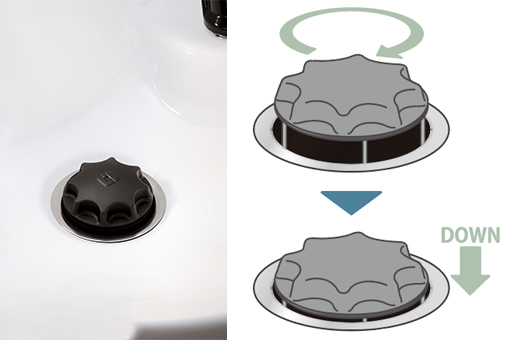 ふたを回転させるだけで、お湯溜め・排水が簡単にできる機構を搭載。従来品であった排水時の嫌な音も軽減しています。
