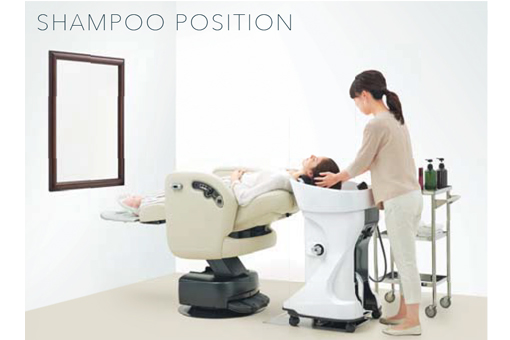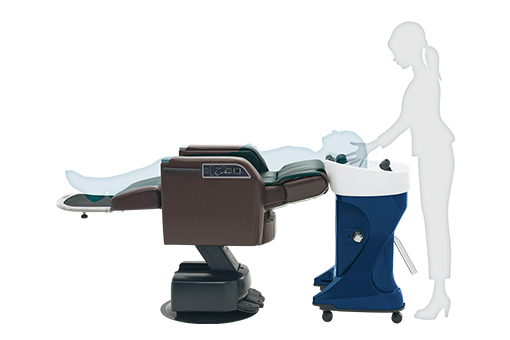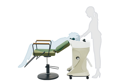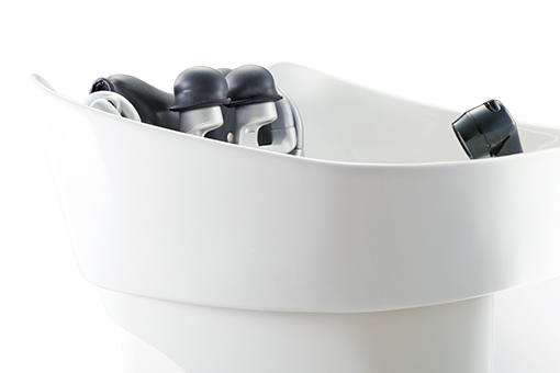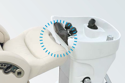 さまざまなタイプのチェアと組み合わせても背モタレとネックデバイスが密接するよう、ボウル前面の厚みと傾斜をミリ単位で調整。体を支える面が広くなることで、お客さまの体格を問わず、快適な寝姿勢をキープできます。
