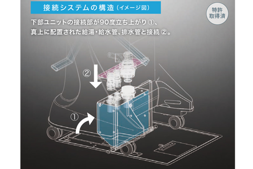 世界唯一※、タカラベルモント独自の「上下ユニット給排水接続システム」