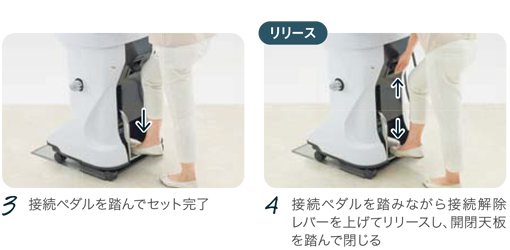 床に埋め込まれた下部ユニットに上部ユニットをセットするだけで、シャンプーが可能に。今回採用した“床上接続方式”により、メカ部を髪の毛やホコリから守り、接続品質が向上しました。毎日使うものだからこそ、品質、メンテナンス性、利便性を追求しています。