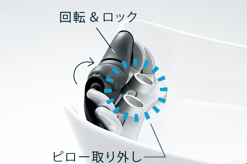 ロッドに干渉しない空間を確保し、中間水洗がよりスムーズに行えます。 -