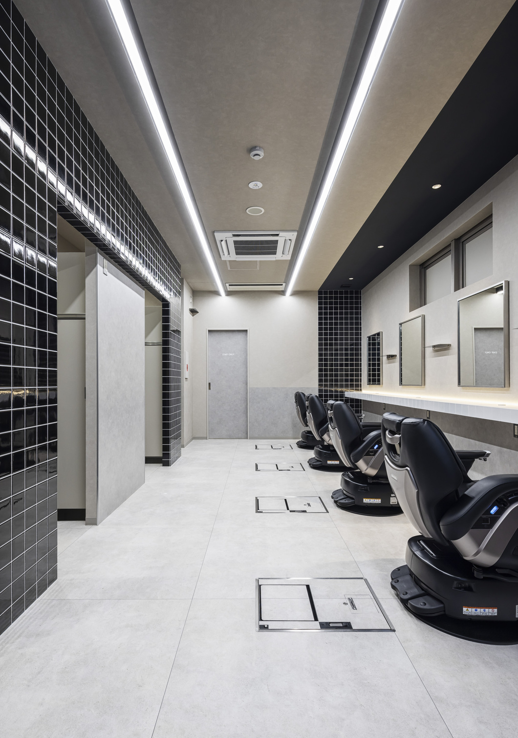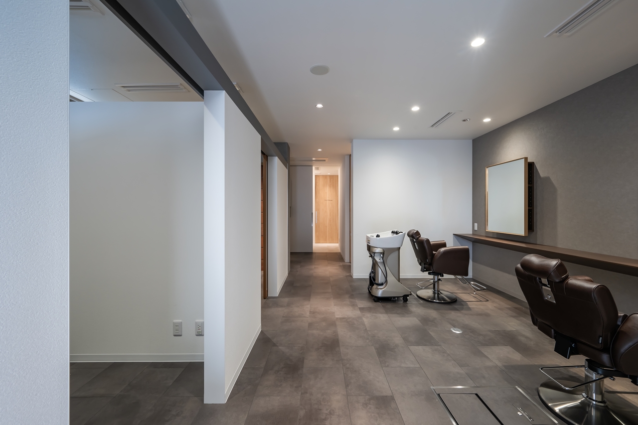 下部ユニットの天板は、サロンの床材のデザインに合わせて自由に変更可能。空間にしっくりとなじみ、目立ちません。