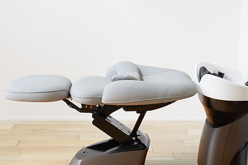 からだをやさしく包み込むような、ふっくらと大きなシート。長時間のヘッドスパに適した寝心地です。