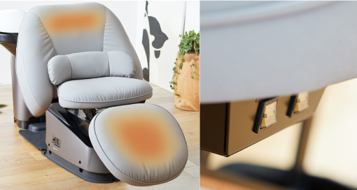 肩口とレッグレストのヒーターを標準搭載。