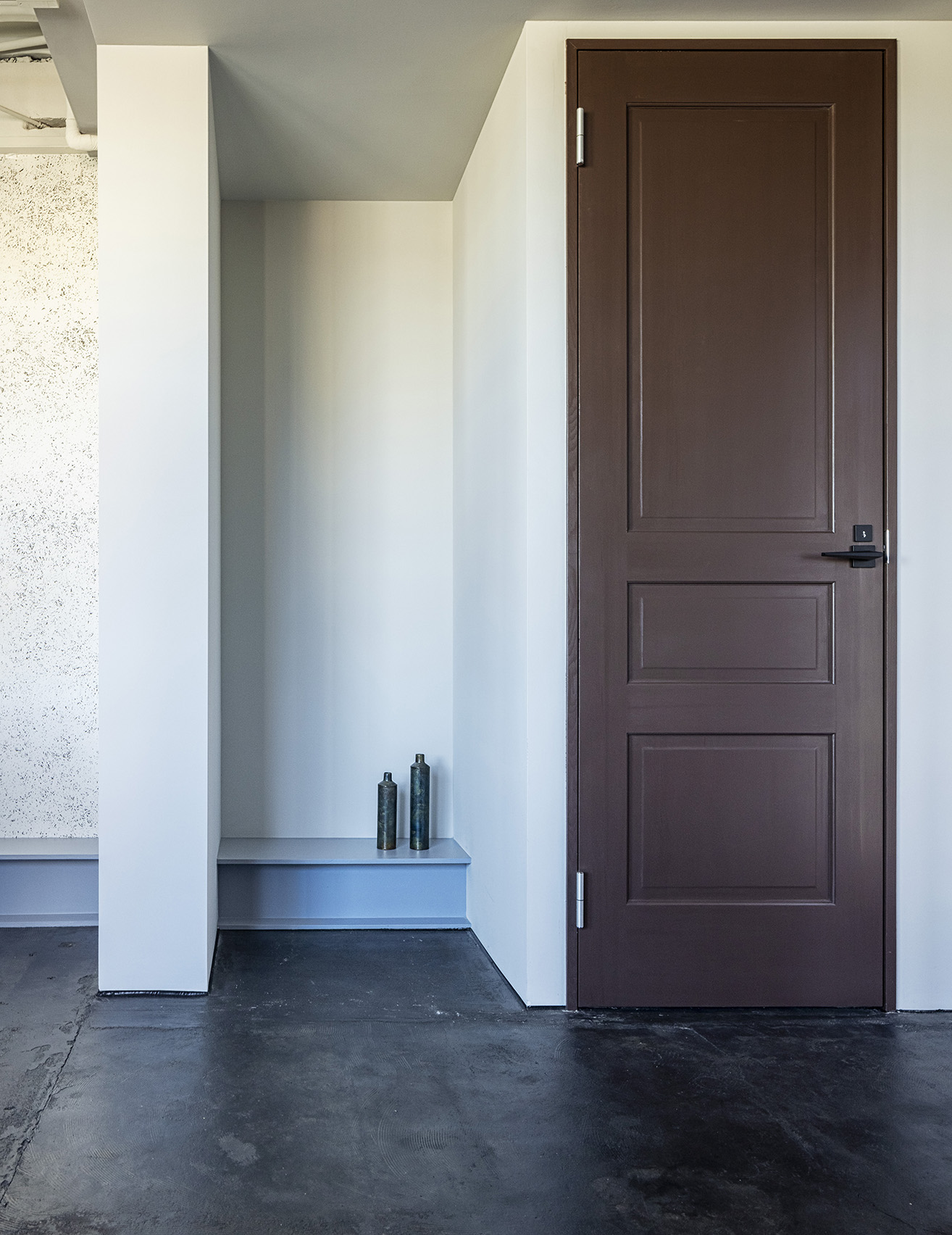床を染色塗装することで、床より上の素材に目がいくように工夫している。