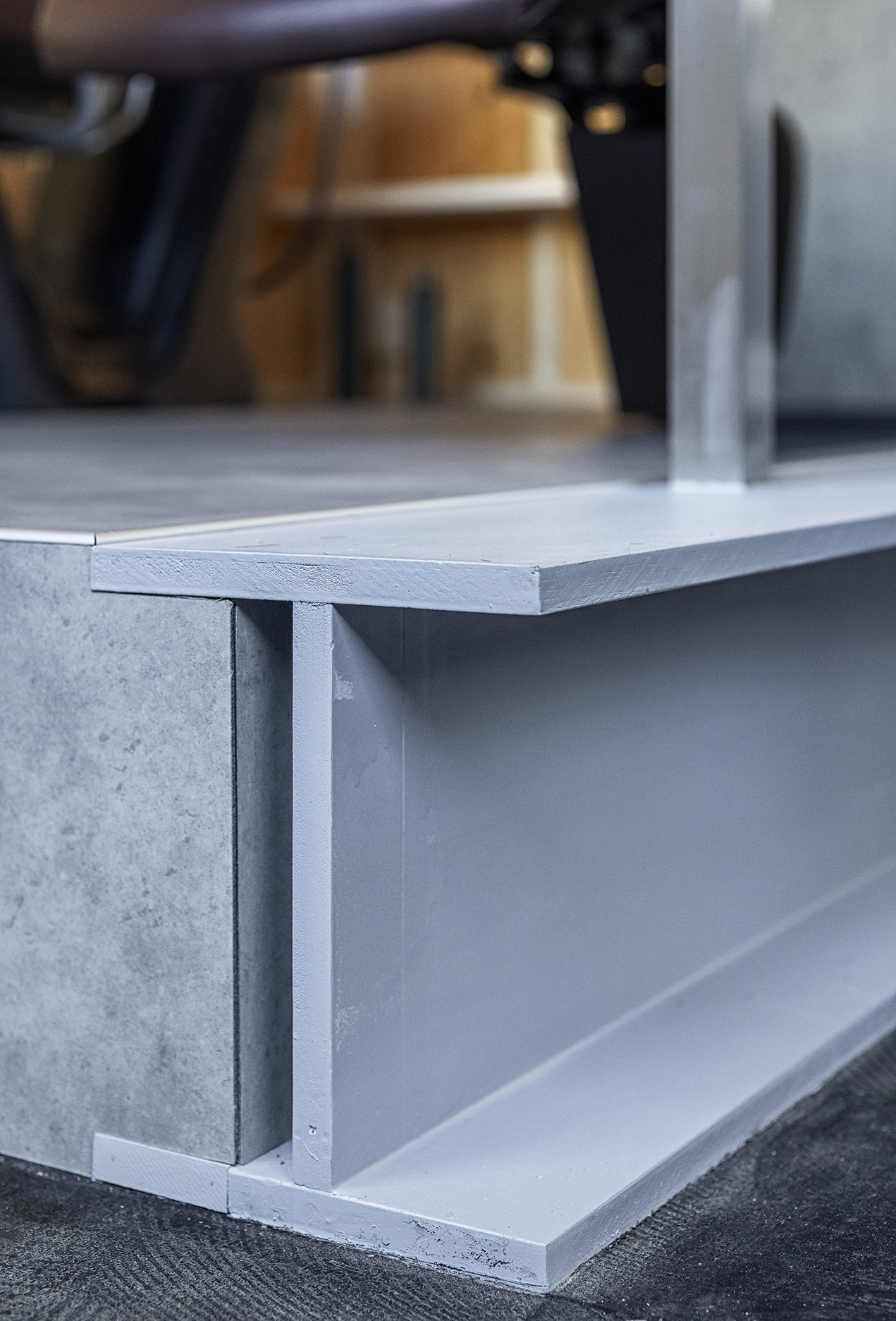 今回スケルトン且つ躯体が鉄骨造ということで、鉄骨・金属・ガラス・木材を使用した工業的(インダストリアル)なデザインに着目した。