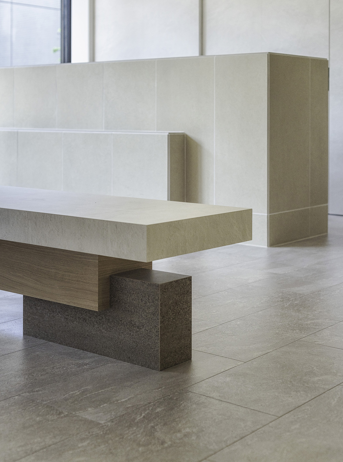 のっぺりした空間に対して、分節した質量を持たせることで空間に動きを与えた。