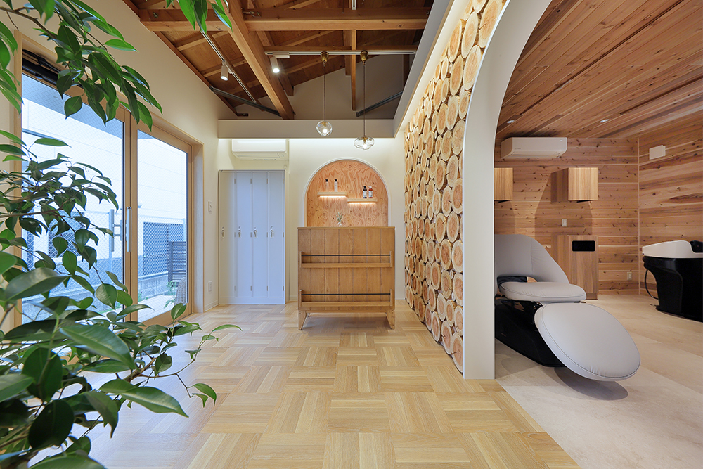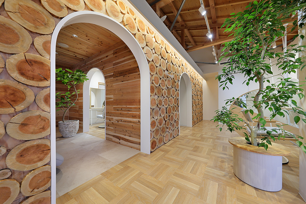 そこで、本来の自然体な自分になれる空間を提供したいと考えた。宮城県のブランド材“栗駒杉”をふんだんに使用し、まるで森林浴をしているかのようなこの上のない温もりを感じられるように設計。各ブースの仕掛けにより、ワクワクとした好奇心が芽生えることで自然体になれる空間を目指した。