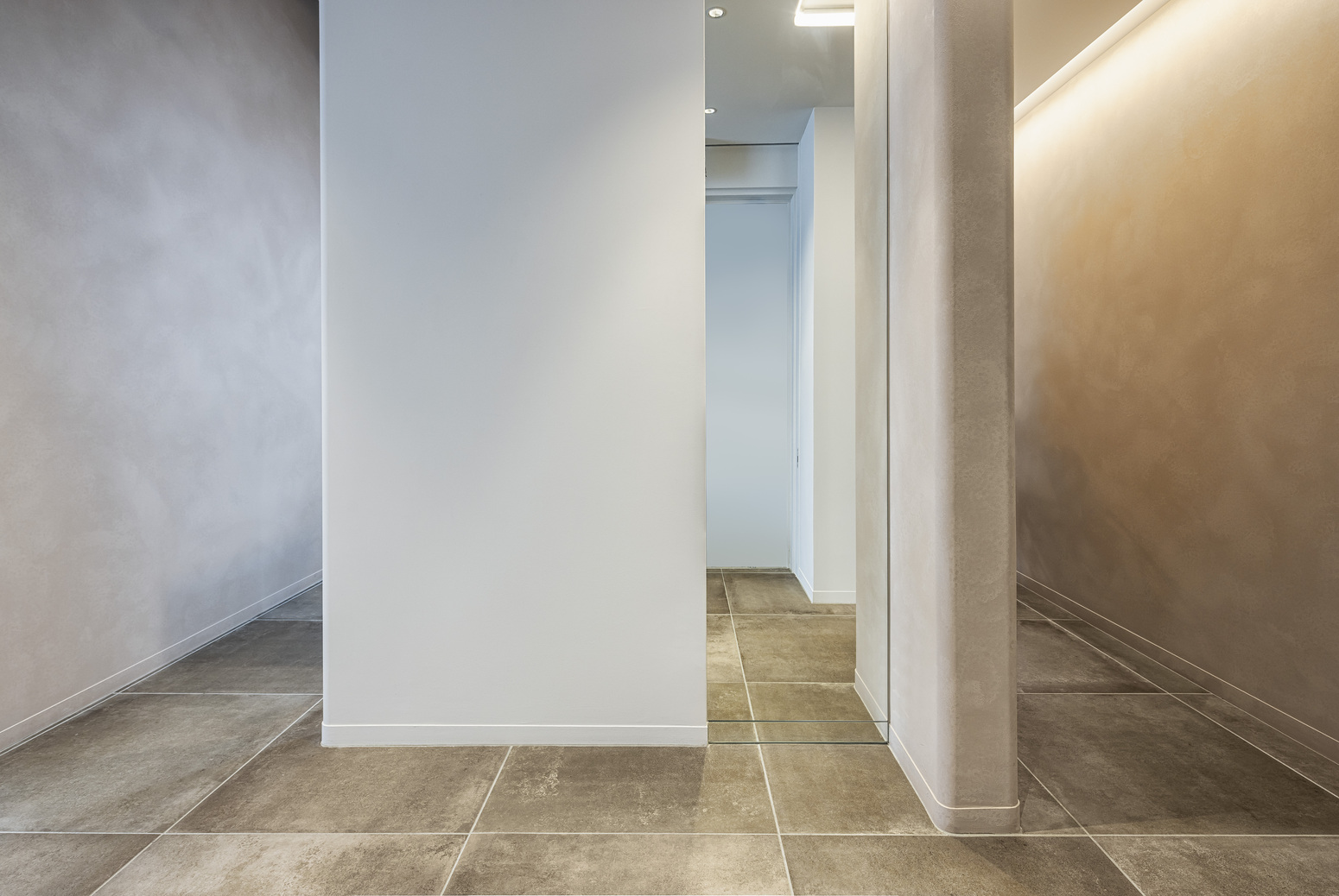 池袋エリアで展開するサロンの3店舗目となる出店。施術スペースはゆったりとした個室空間、かつカップルや親子など2名で訪れたお客様にも対応できる柔軟な空間が求められた。壁のレイヤーを意識した構成にすることで奥行き感を強調し、仕切ることにより損なわれてしまう空間全体の抜け感や、閉鎖的な印象を解消した。また、大きな窓面から自然光が入るテナントの利点を活かし、壁の向こう側から光が漏れるような見せ方をすることで、奥に広がる空間をイメージできるように工夫した