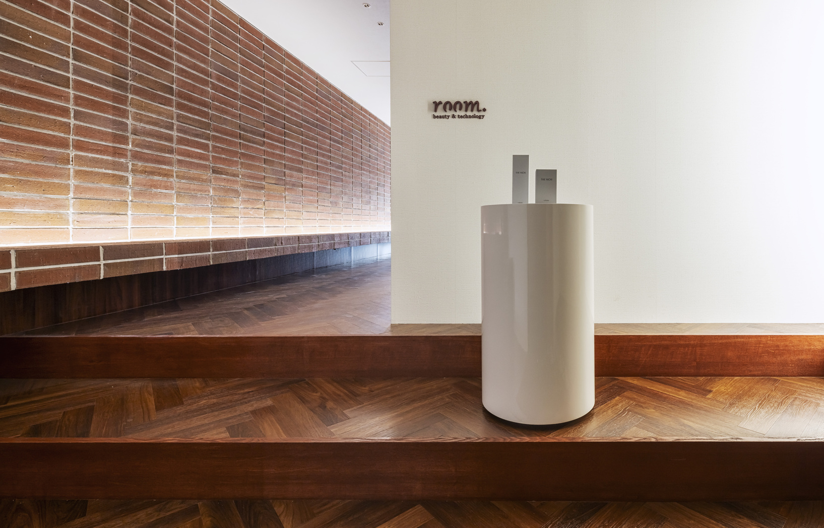 個室型サロンの支店計画。多店舗かつ全国展開を目指しており、それならば地場の特色を内装空間に取り込みたいと考えた。計画地である江戸堀の街は江戸時代に大阪の市街地拡大とともに整備された堀川の一つで、商業活動や物流の中心地として発展した。そんな中、文化発信地として中之島公会堂がランドマークとして存在しており、ビジネスと文化が融合した姿がこの街の特徴と言える。永久保存が決まっている中之島公会堂を想起させるような質感を空間に取り入れつつ、街の特色を取り入れ、ワークスペースや展示スペースを備えた空間とした。