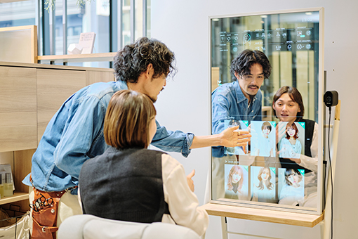 スタイリスト専用のヘアカタログやシミュレーション機能など、ミラーに映し出される約15個の機能により、顧客体験やスタイリストの提案がどのように生まれ変わるのかを体験していただけます。顧客満足度の向上や売上アップに繋がる、サロンのDXに触れてみませんか?