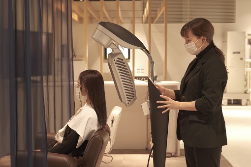 保温加湿する微細ミストが髪に⼼地よく、均⼀でムラのない仕上がりはヘッドスパに最適。