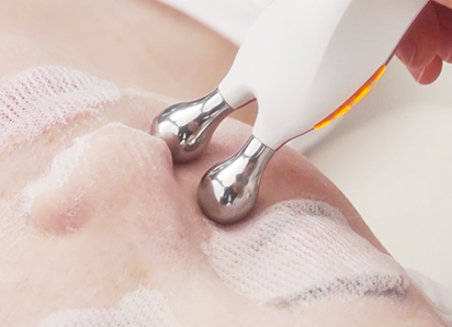 あたため・ほぐし・引き締めの3ステップで、引き締まったお顔⽴ちに。