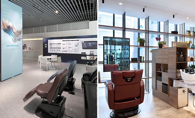 可動式ステージや特殊照明を完備し、実技講習からヘアショーまで多⽬的なイベントが実施可能なスペース。最⼤300名収容可能。