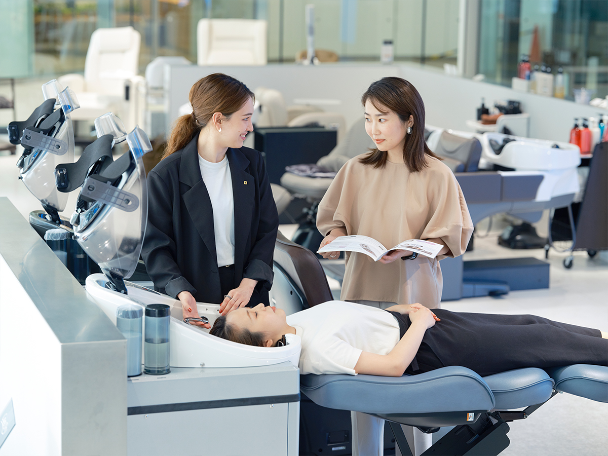 お客様の気持ちを知るには、まずは自分がお客様の立場になること。シャンプーや機器の体験を通して、お客様視点で開業するお店のイメージを膨らませましょう。