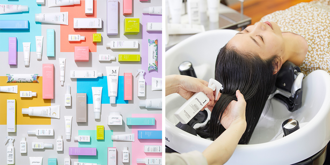 髪質やダメージ度に合わせ、豊富なケア材からお客さまに最適なケアを提供できる、頭⽪まで健やかに導くヘアケアプログラムです。