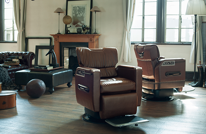 バーバーサロンの顔ともいえるバーバーチェア。空間やメニュー構成に合わせて、デザインや機能、様々なタイプのチェアをご用意。